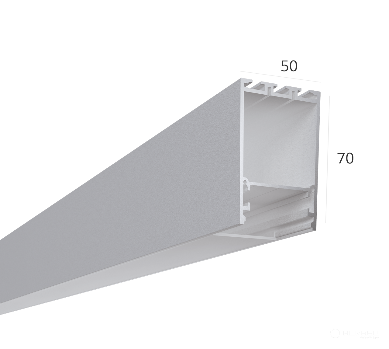 Available: black, white, silver. Suspended / surface-mounted aluminum profile for the manufacture of linear lighting systems. The profile has a compartment for installing a power source.