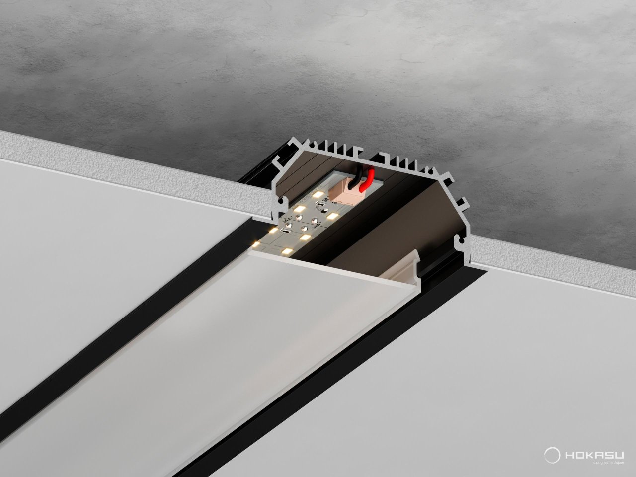 HOKASU Heat Control (HHC) is a specialty polycarbonate that delivers 10 times more heat than conventional raw plastic. The main factor affecting the durability of the luminaire is good cooling of the LED modules, which is very important when designing. Recall that the basis of the HOKASU linear lamp is aircraft-grade aluminum. The only element that does not transfer heat well is the diffuser. Based on these factors, we developed polycarbonate using HHC technology, which allowed us to increase heat dissipation in the finished luminaire.