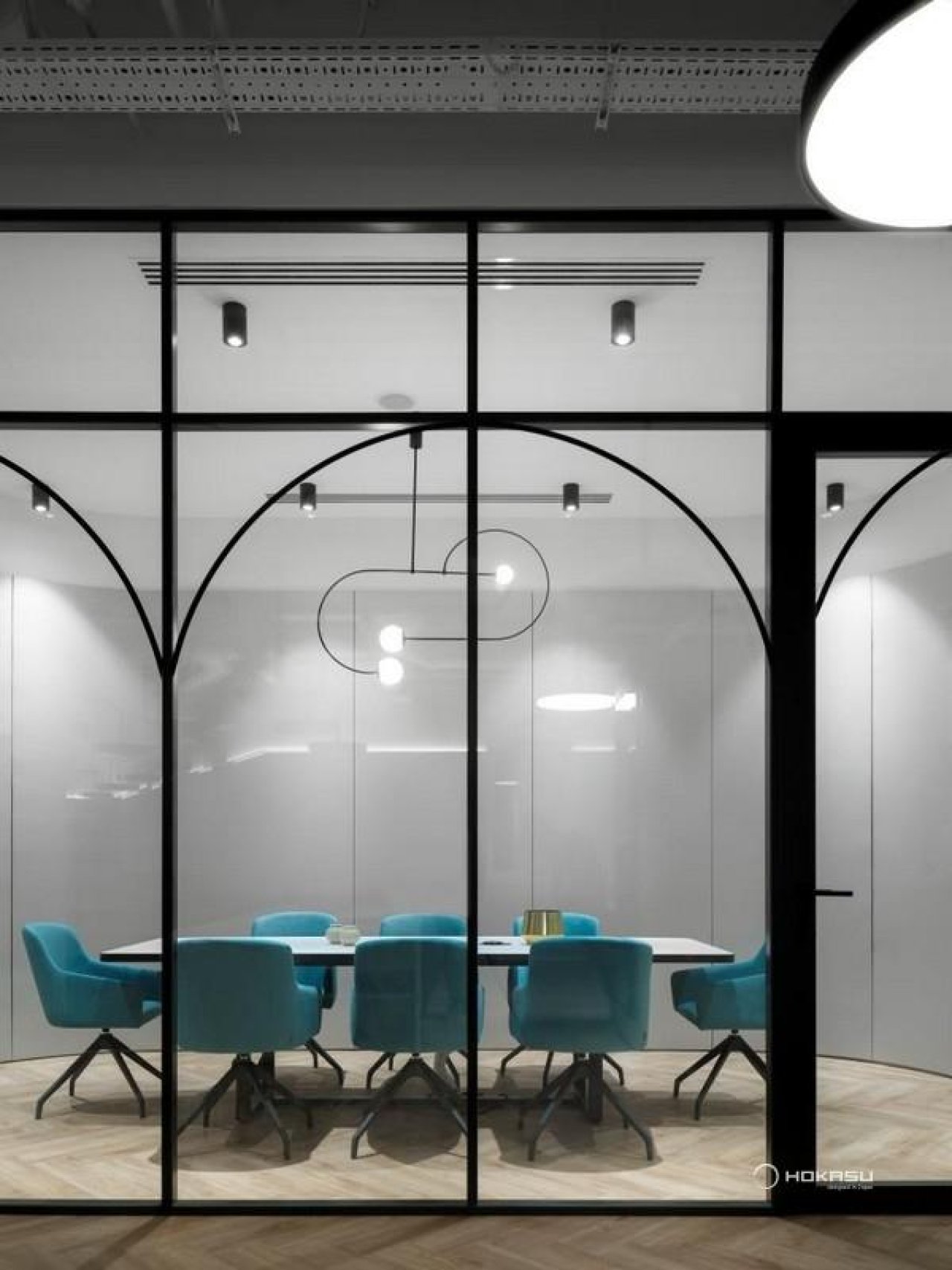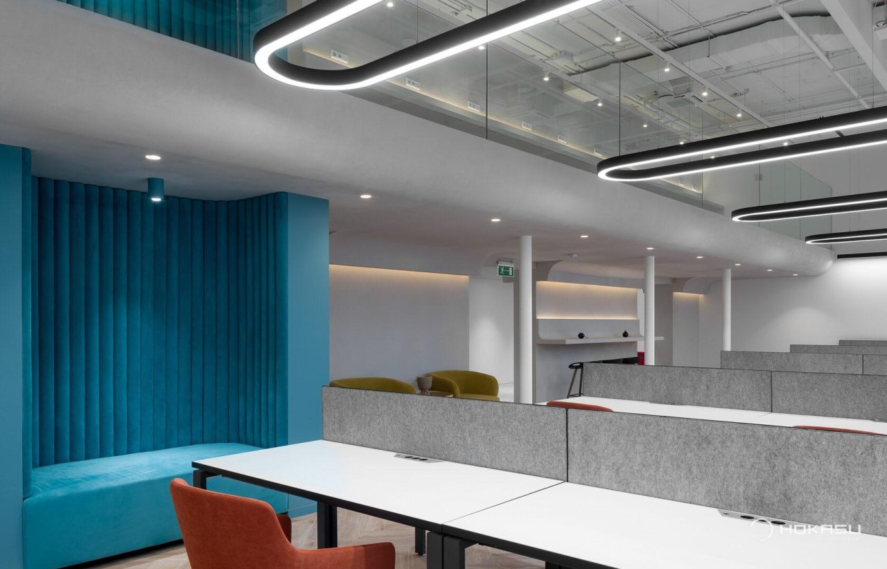 In the Open Space area there are radius linear luminaires of the Wave series, which create dynamics in a static space. And for smaller office spaces we have made pendant linear luminaires of the 50/70 series with an elongated body shape.