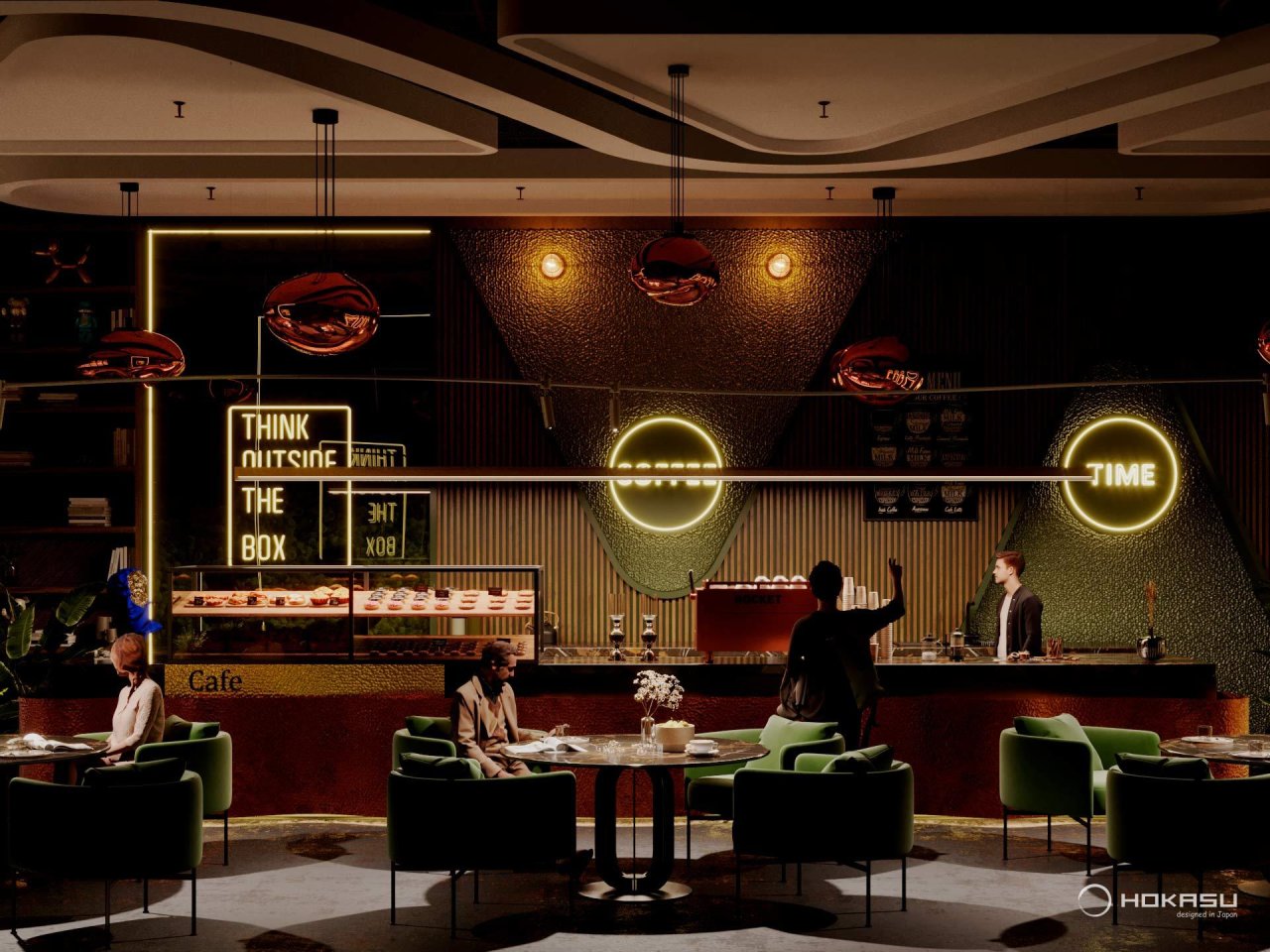 The Tube Zoom luminaire series is equipped with a special lens that allows for adjusting the beam angle from 12° to 50° by rotating the housing. The swivel mounting mechanism enables directing the light in the desired direction. Above the bar counter, the Brick series luminaire is positioned. The stylish design of the housing transforms the surrounding space and fills it with pleasant diffused light.