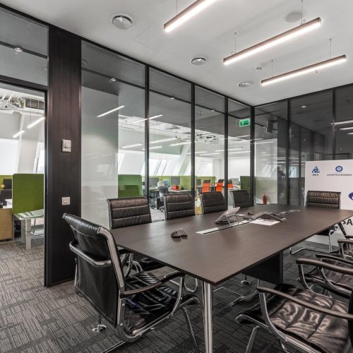 There are three meeting rooms in the office on Nakhimovsky Prospekt. Especially for this project we made 9 black HOKASU S50 linear 1250 mm luminaires - 3 luminaires in each room. The lighting system is organized in such a way as to enable clients, partners and counterparties to hold business meetings in the most comfortable and safe conditions.